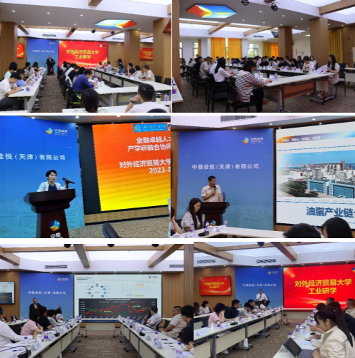 座谈交流环节我校教师冯建芬介绍了金融捆绑调教 产学协同育人的特色和成效;中粮佳悦刘杲华介绍了油品生产流程、新技术应用、和生产风险管控与产品品质保障措施;中粮期货李楠介绍了油脂企业套保的有效措施;工信部工业文化发展中心李清安介绍了工业文化发展、工业文化遗产保护和通过工业研学提升中国工业的文化实力,助力实现工业强国的工作计划。