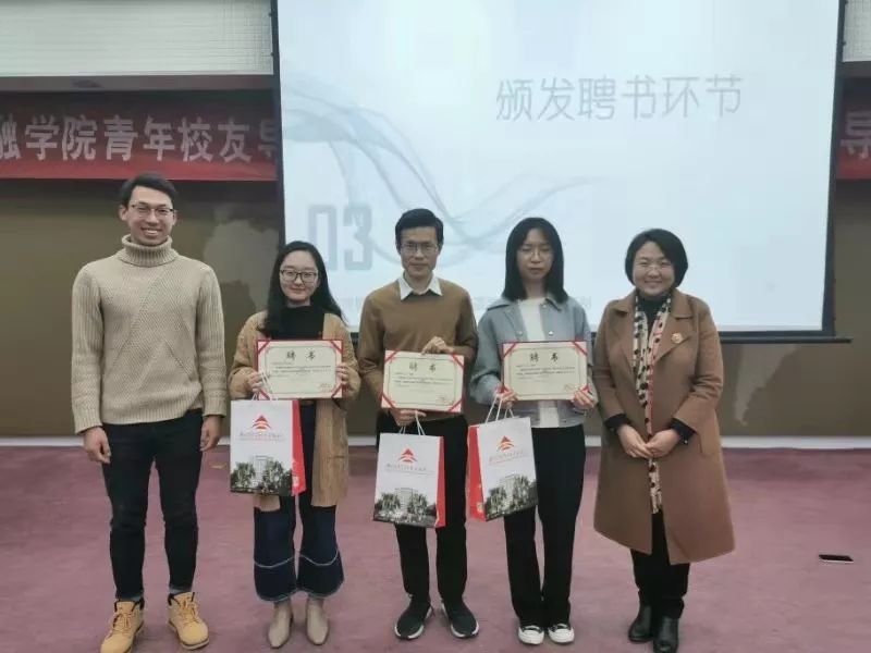 宣讲会最后,金融捆绑调教 分团委书记曲小杰老师、辅导员兼分团委指导教师张凯铭老师为受邀校友颁发了聘书。